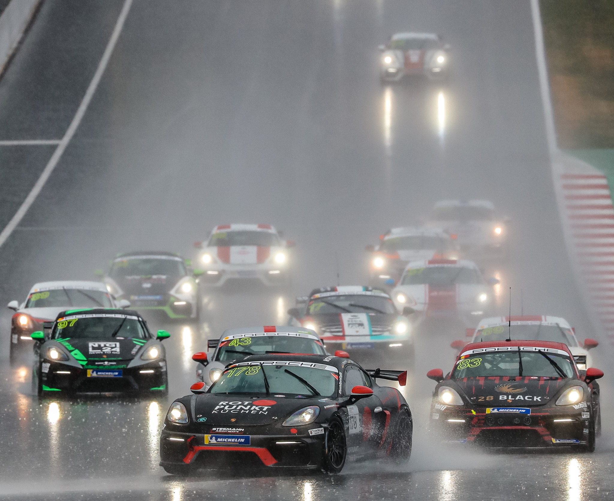 V sobotu se jezdci museli poprat mimo jiné i s deštivým počasím. Foto: Porsche Sports Cup Deutschland