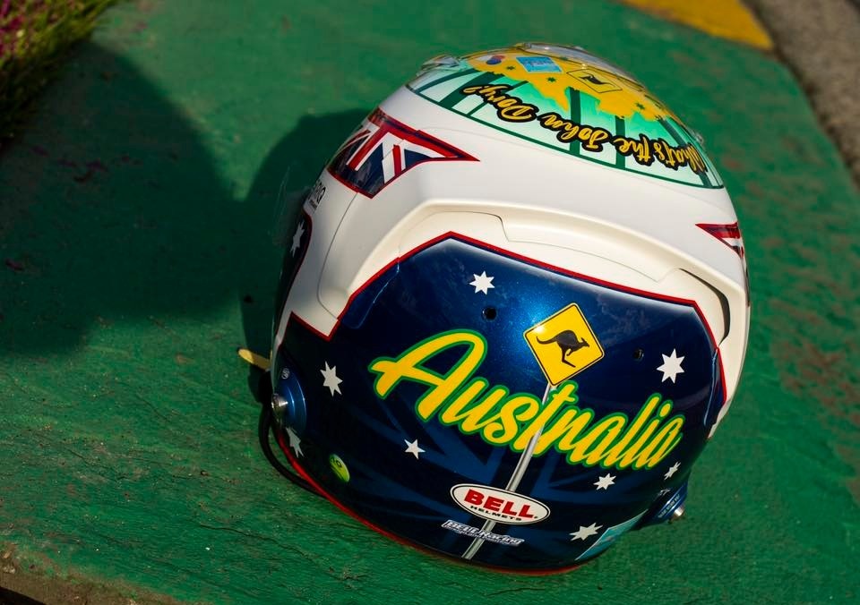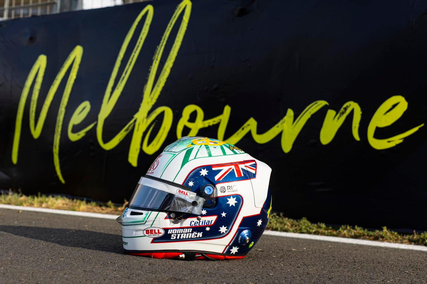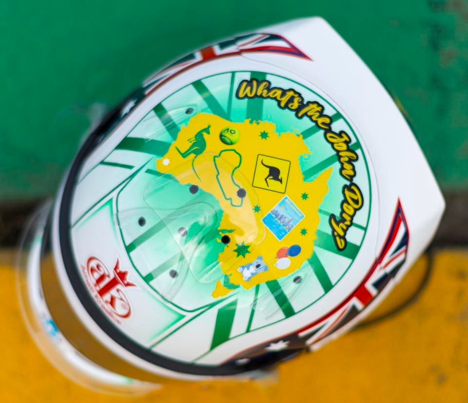 Pro víkend v Melbourne si Staněk nachystal speciální přilbu. Tradiční bílý design doplňují modrá, žlutá a a zelená. Tato kombinace poukazuje na australské barvy a motivy.
